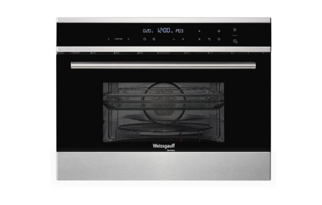 К функциям духовки и СВЧ-печи добавлена пароварка. Прибор невысокий — 45 см, что позволяет его устанавливать в колонну или под варочную поверхность.