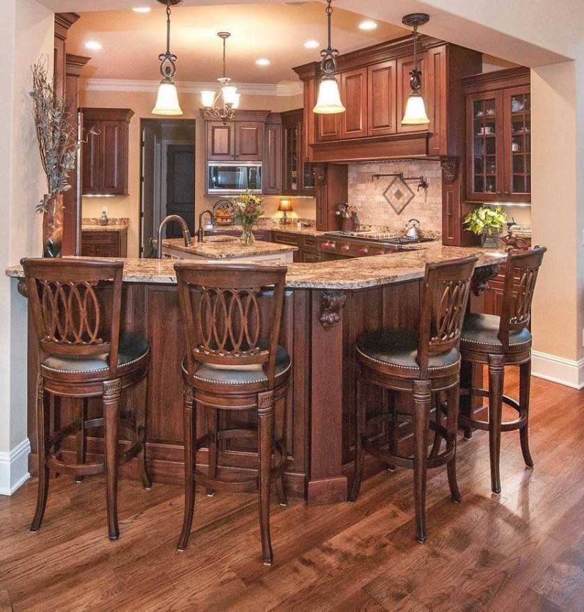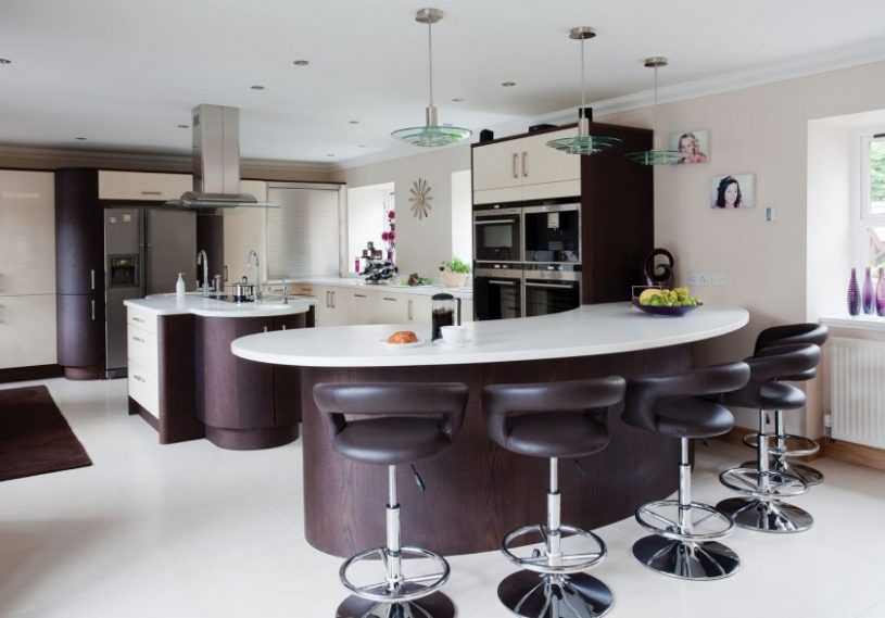 Выбираем его с учетом площади кухни, а также общего стиля. Например, полукруглые барные стойки из дерева совсем не в пишутся в стиль hi-tech. Если выбираете гибридную стоку, где с одной стороны находится обычный стол, найдите необходимый стол или же точный чертеж.