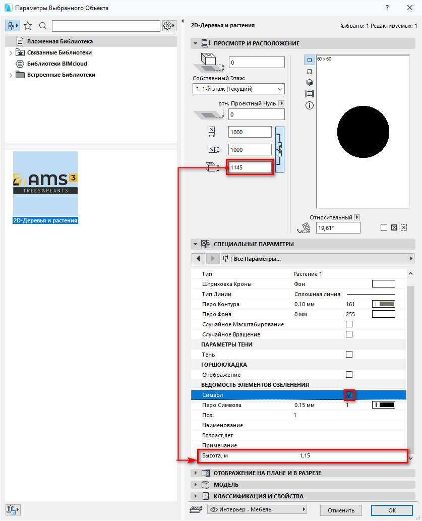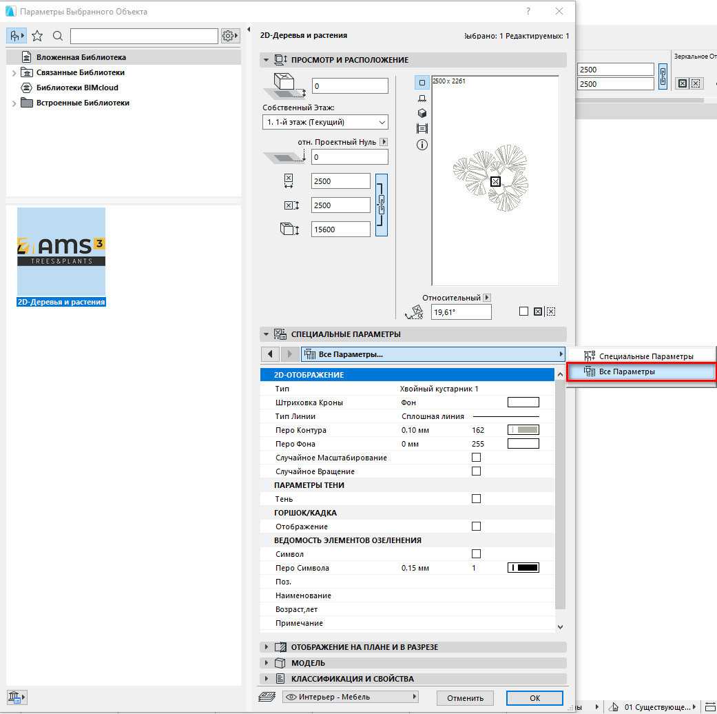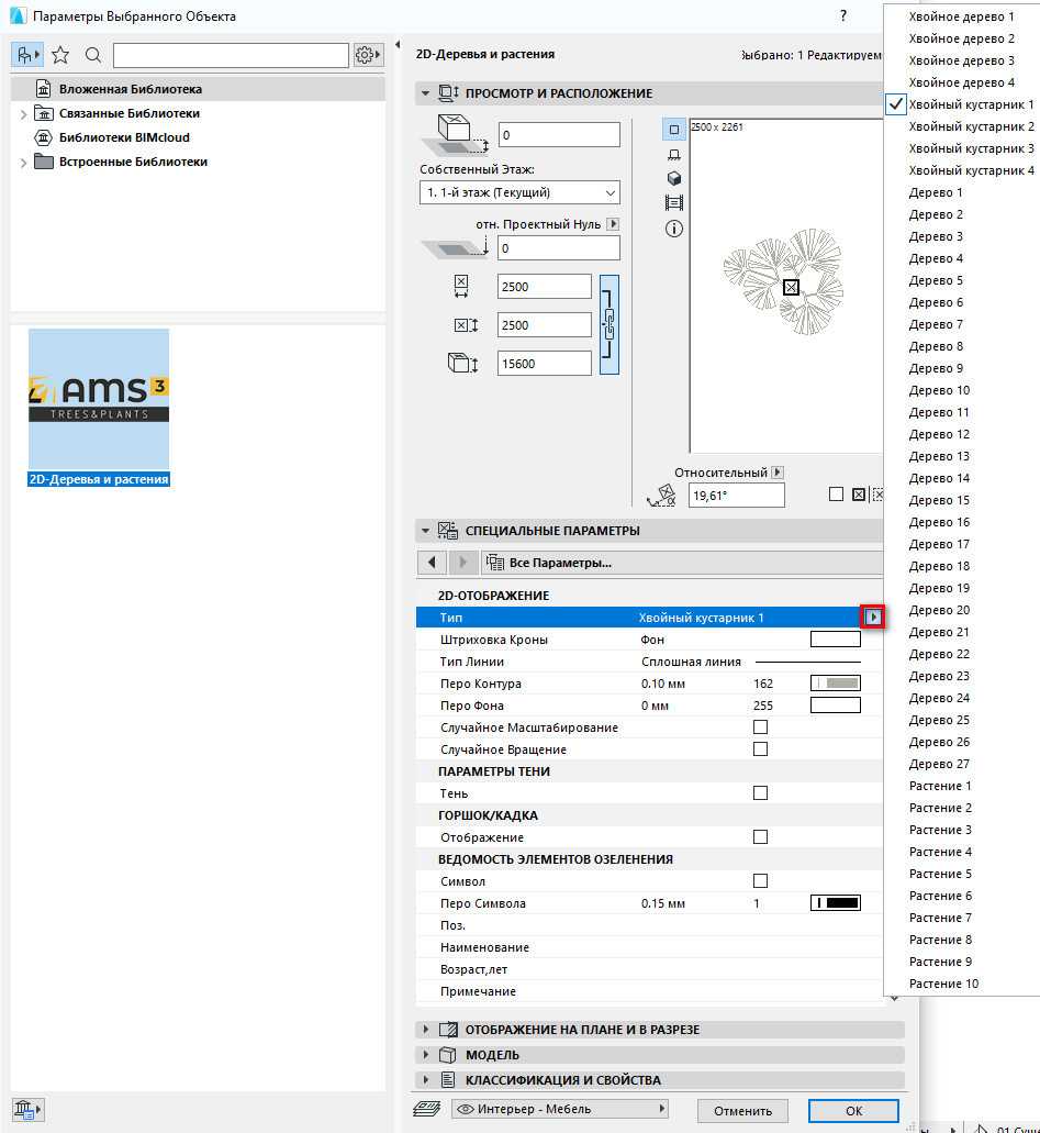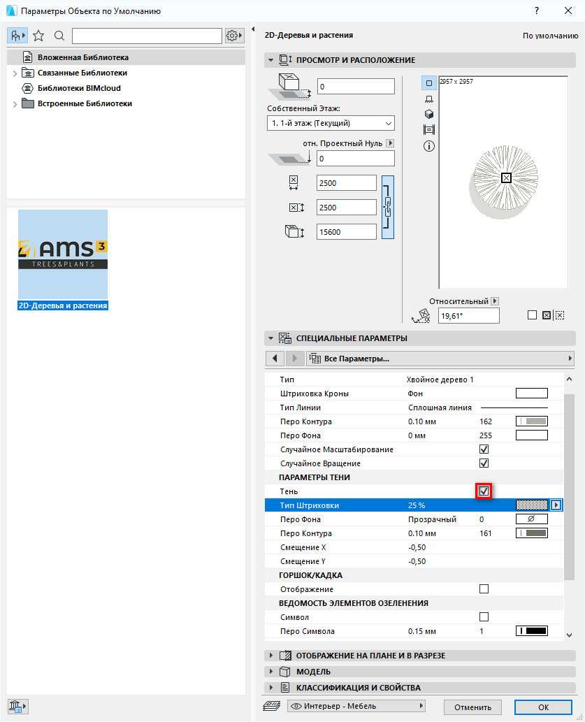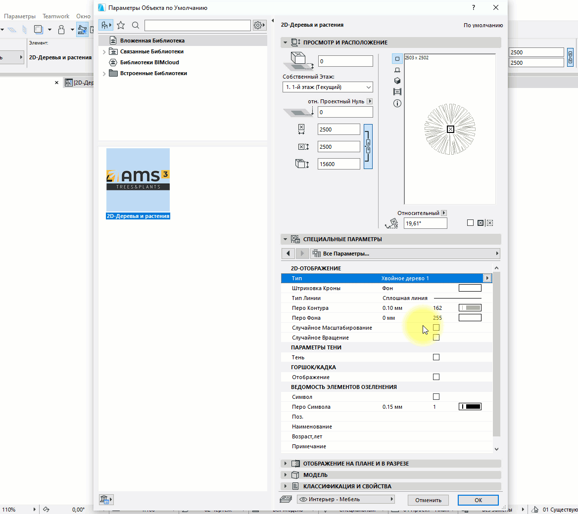 - 2D-ОТОБРАЖЕНИЕ. Набор этих параметров отвечает за символ дерева или растения. Его отображение и цвет.