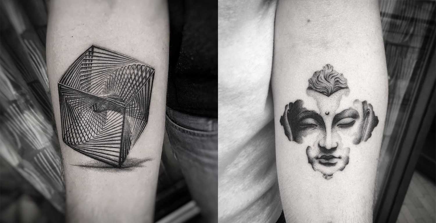 Черные и серые 3d татуировки: оригинальные эскизы на фото примерах