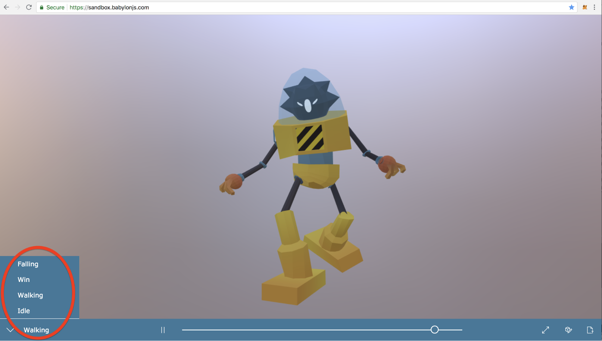 In the sandbox you can also view the animations that are embedded in the model, select which to display by picking it out of a dropdown menu.