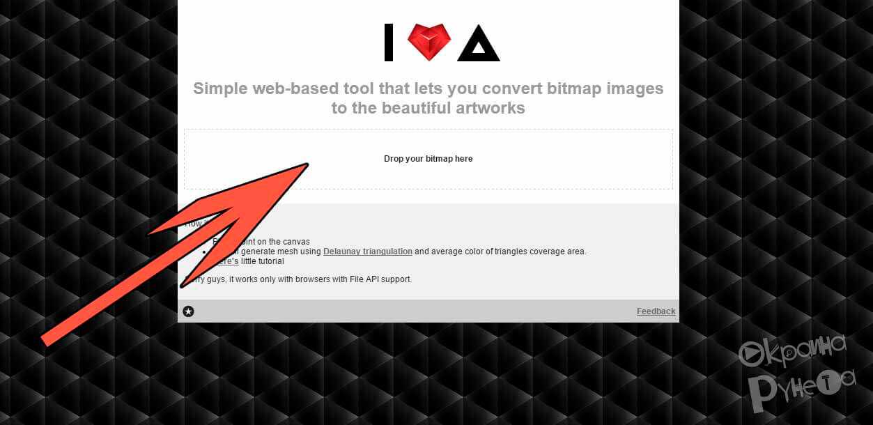 Заходим на него и перетаскиваем мышкой изображение, которое хотим сделать в Low Poly стиле