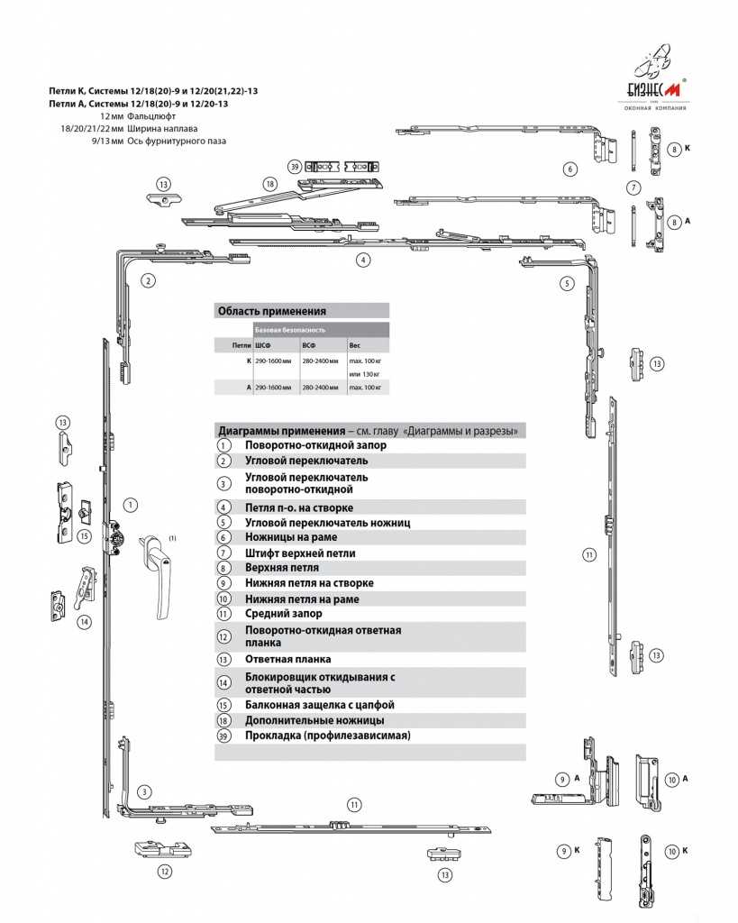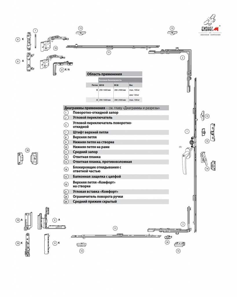 Для комплектации поворотно-откидной створки применяются дополнительные элементы обвязки (периметрально закрепляемые механизмы прижима):