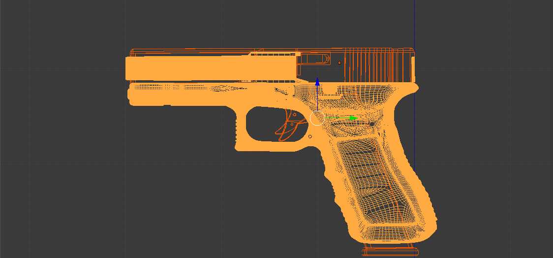 Наша модель должна быть разделена на 4 части: затвор, курок, магазин и основную часть. Магазин, также как затвор и курок, должен состоять из минимального количества полигонов, потому что большая часть полигонов пойдет на основу пистолета.