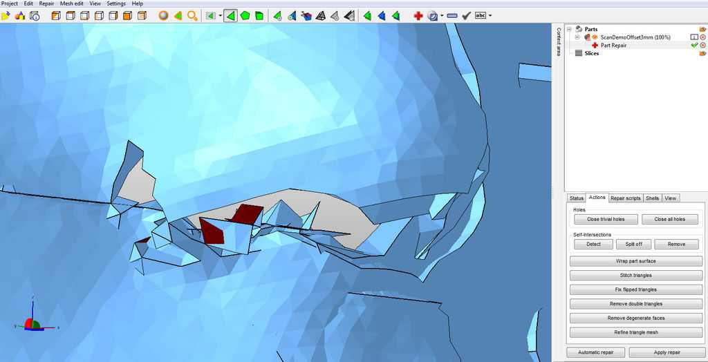 Эта функция также может привести к вырожденным треугольникам, поэтому вы можете запустить одно последнее автоматическое восстановление, чтобы устранить последние проблемы.