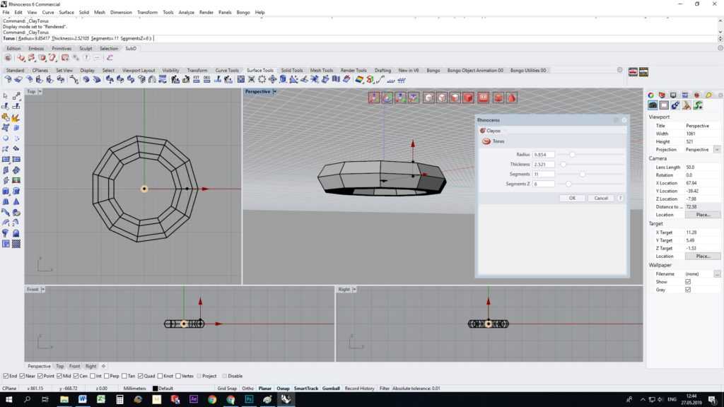 Основное назначение Rhinoceros 5 – это создание полигональных кривых, геометрически сложных поверхностей и дальнейшее преобразование их в 3D-модели.