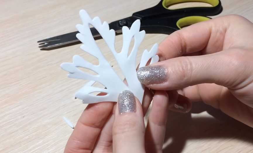 - украсьте новогоднюю елку. На зеленом фоне белые блестящие поделки будут ярко выделяться, к тому же они легкие и не будут оттягивать ветки;