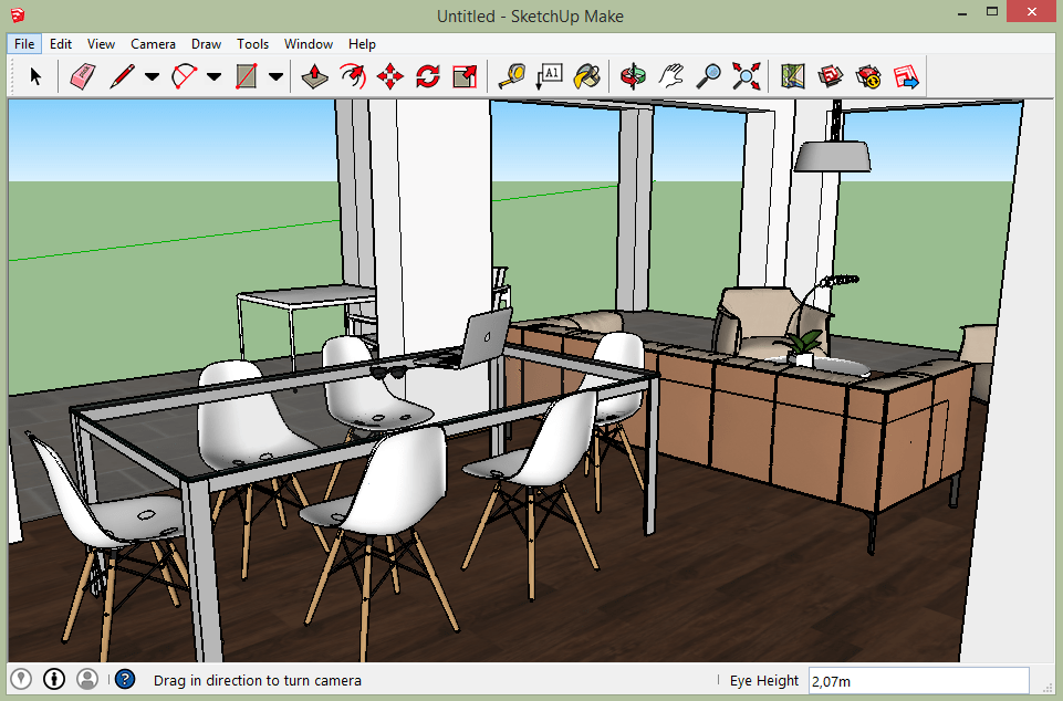 SketchUp – одна из самых простых и понятных систем для 3D-моделирования. Представлена она в двух версиях – платной и бесплатной. Конечно, платный вариант представляет гораздо больше возможностей, но и в бесплатной версии можно создать очень и очень много интересных проектов. СкетчАп позволяет создавать модели с помощью простых инструментов: линии, углы, дуги, геометрические фигуры. С их помощью вы вручную можете нарисовать любую деталь интерьера. Но если вы рисовать не хотите, то также можете скачать и загрузить готовые модели с официального сайта или просторов интернета.