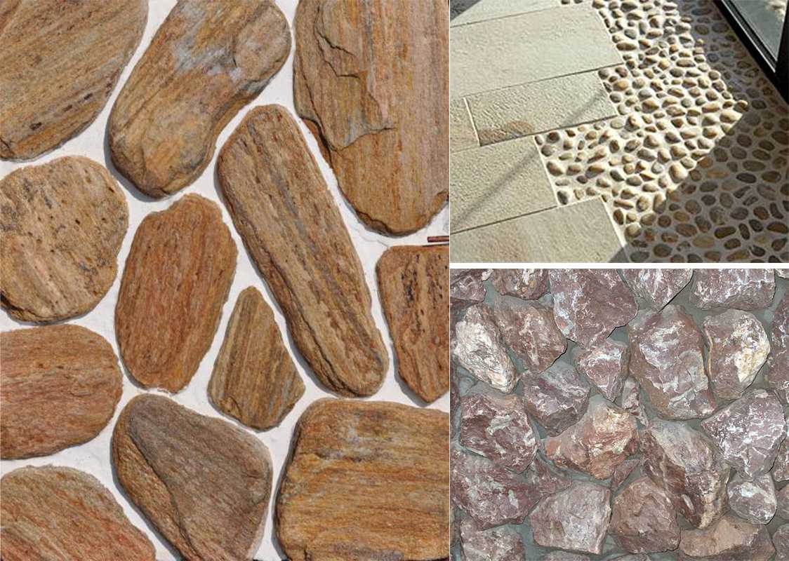 Формы: лапша (сланец), торцевая нарезка (брекчия), пластушка (песчаник), плитка (кварцит)