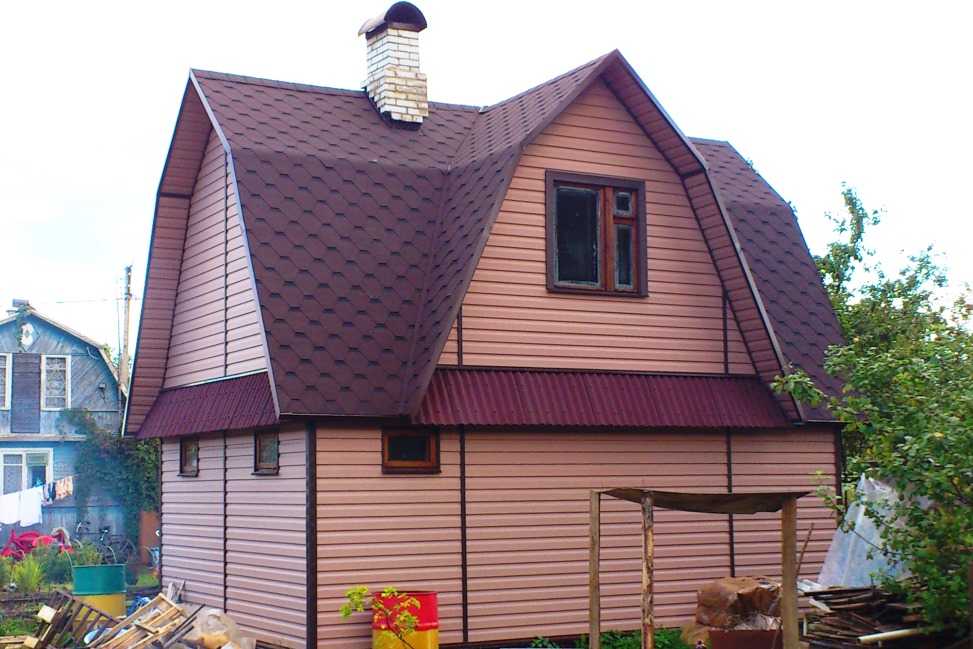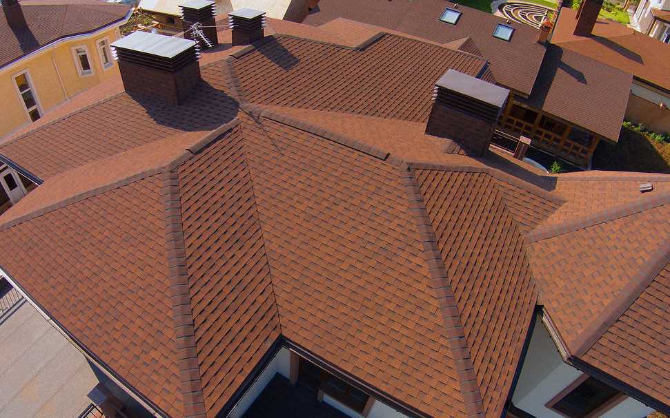 Проводить монтаж материала необходимо внахлест. Основное достоинство битумной черепицы заключается в ее универсальности, она подойдет для любого типа крыши в независимости от конструкции, угла наклона скатов и сложности конфигурации.