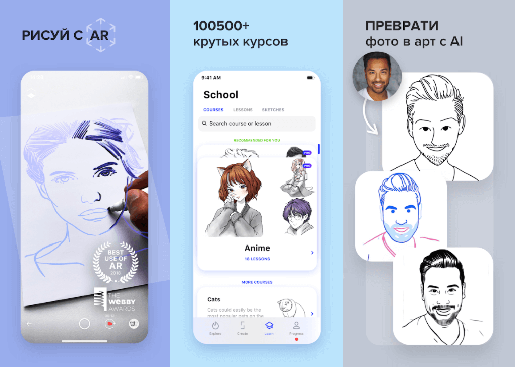 Совершенно уникальное приложение, которое учит рисовать с помощью дополненной реальности и машинного обучения. Виртуальный рисунок проецируется на любую поверхность – альбом или стену – и его можно пошагово скопировать.