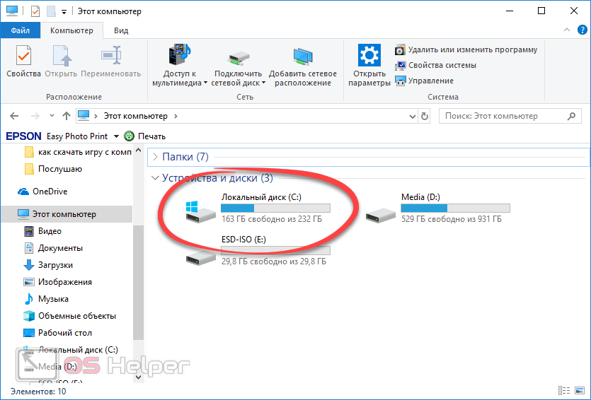 - Запускаем наш проводник, нажав на иконку папки на панели задач.