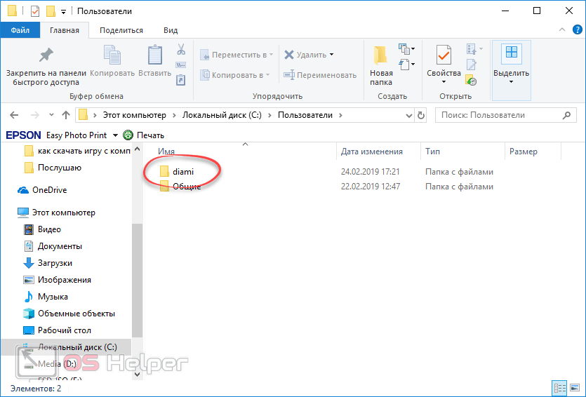 - Находим каталог конкретного пользователя и переходим к нему. Если игра установлена для всех нужно открывать папку «Общие».