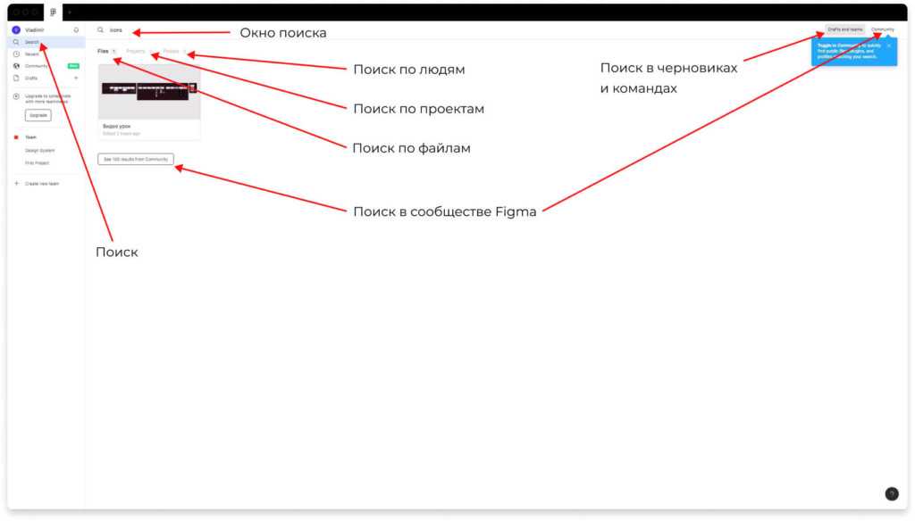 Поиск (вкладка Search). Как пользоваться в Figma?