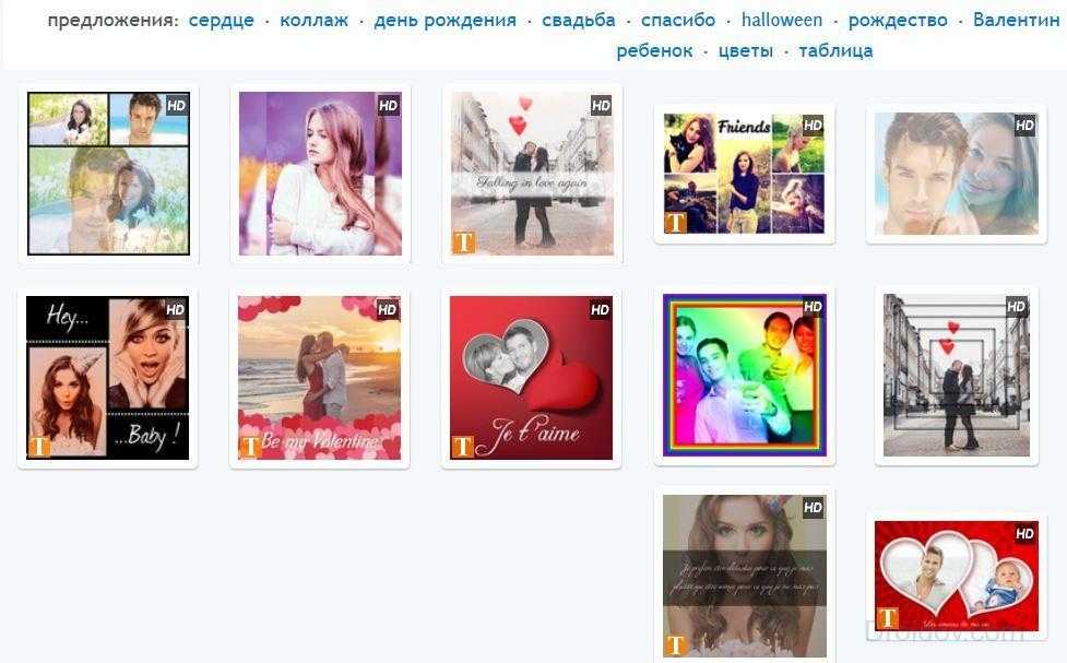 Приложение для редактирования фотографий Pixiz доступно на сайте http://ru.pixiz.com/, можно скачать версию для Андроид. Основное предназначение – всевозможные коллажи. Множество рамок и готовых многослойных сборок образуют настоящую фотошоп фотофабрику в браузере онлайн. Вам остается только выбрать подходящую категорию – семейный пикник или встреча влюбленных, дружеская вечеринка или детские радости – и вставить свою картинку.