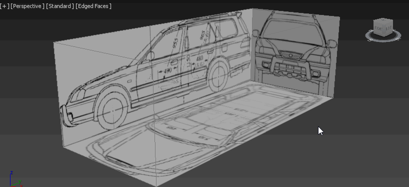 Виртуальная студия — это некий каркас, состоящий из плоскостей с чертежами всех проекций автомобиля: верх, лево/право, перед/зад.