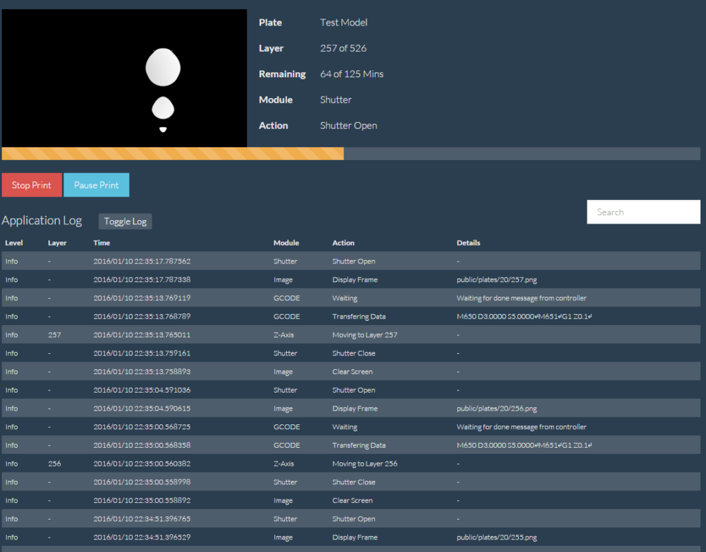 The Monkeyprint is a pre-processing and print control software for 3D DLP printers. You can manage multiple designs within the same profile and use it over the internet library through a browser.