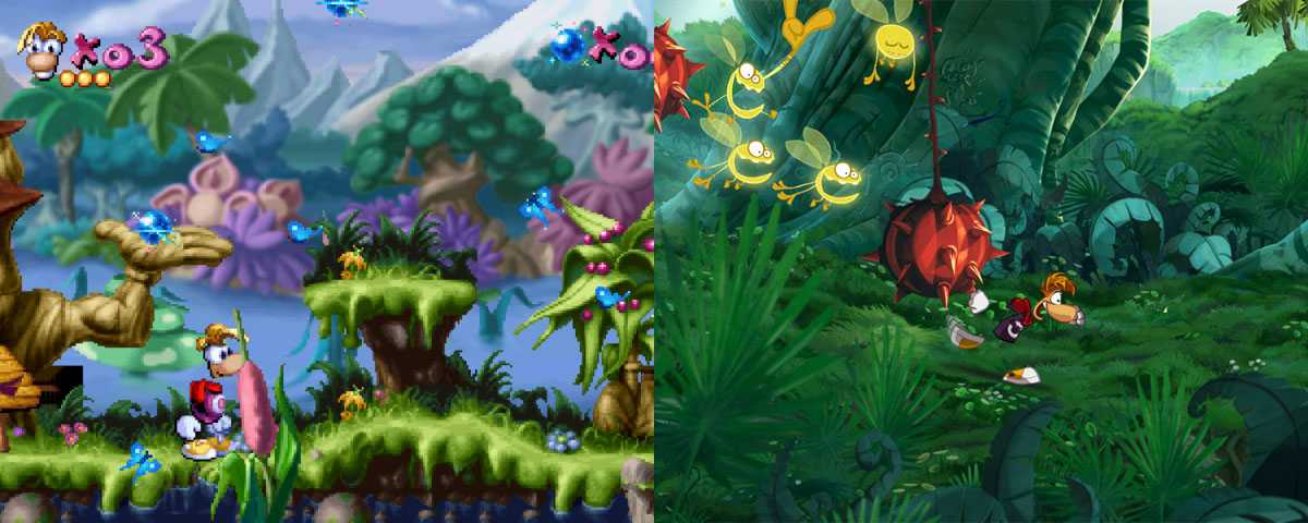прошла путь от 2D-платформера в 1995 году до версии Rayman Origins — 3D-игры с яркой графикой в 2013 году. Главный персонаж Рэйман в своей 3D-версии расширяет границы свободы действия, дополняя игровой процесс новым опытом.