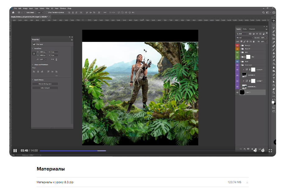 Курс не просто про Фотошоп, а именно как его использовать 3D-специалистам и какие функции нужны им в работе — обтравка изображений, ретушь, работа со слоями, масками и эффектами. И финальная работа — постер — в портфолио.