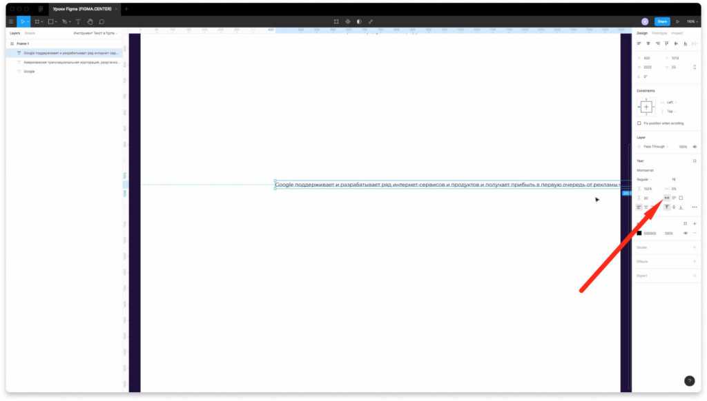 Если включить иконку «Auto width», то ширина текстового фрейма будет автоматически увеличиваться в зависимости от того текста, который там есть.