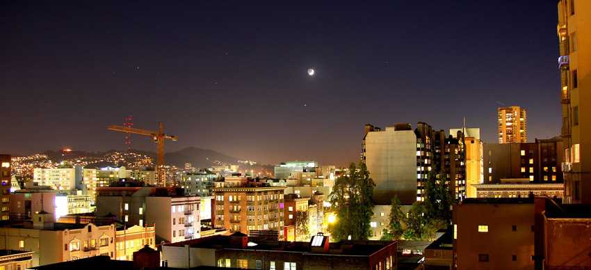 На небе больших городов можно наблюдать только самые яркие небесные светила — Луну, планеты и ярчайшие звезды. Фото: Martin Rosen