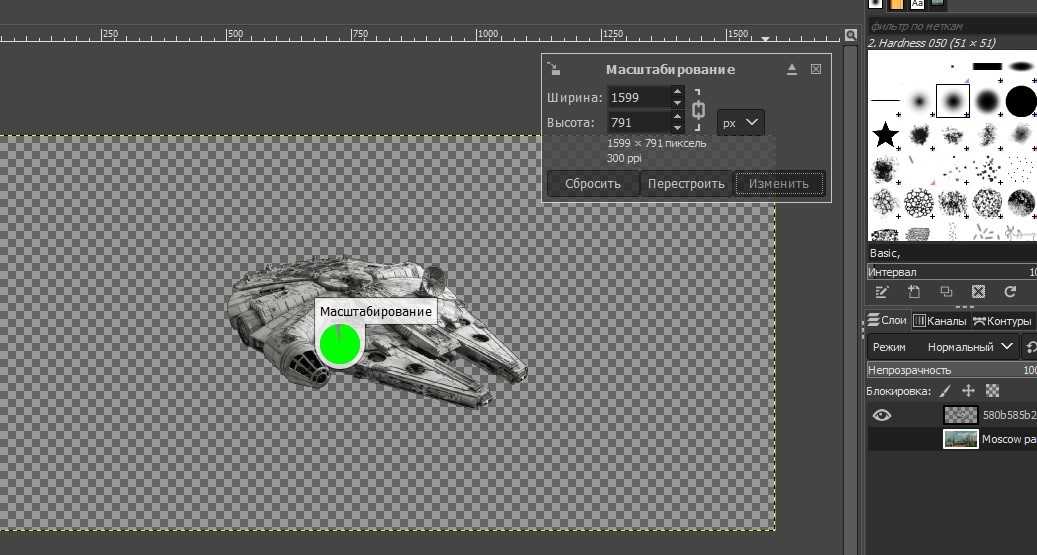 Затем повторяем те же действия со вторым изображением. Автору статьи хотелось, чтобы космический корабль стал меньше и в дальнейшем расположился на небе в левом углу изображения.