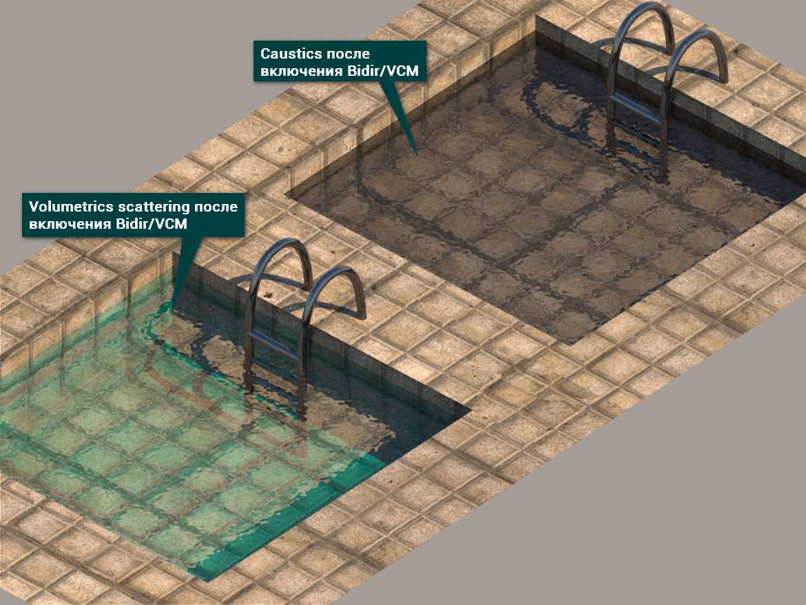 С данными настройками стоит быть очень аккуратным, т.к. они экспериментальные. Более того, улучшив рендер каустики, может сильно измениться результат для материалов без этого свойства. Результат можно увидеть ниже.