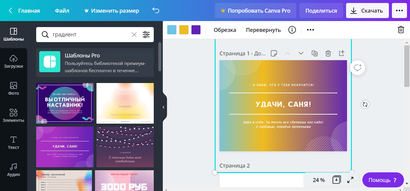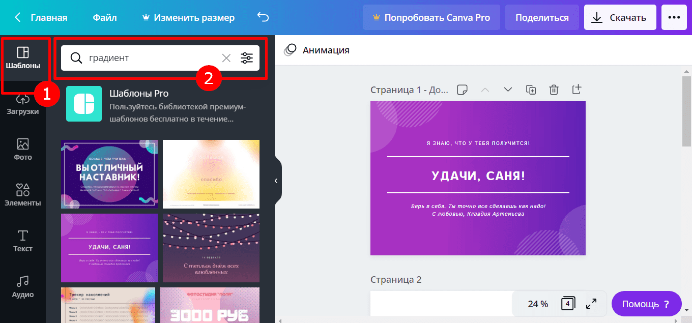 Совет. На каком языке напишите на таком языке сначала Canva подберет шаблоны.