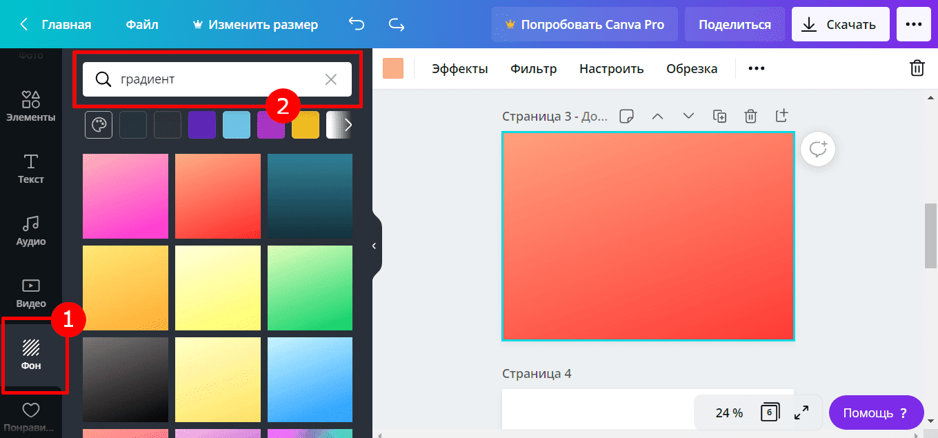 ШАГ 2. В поисковой строке введите: градиент или gradient.