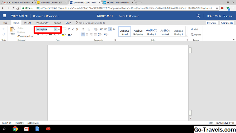Если вы используете приложение Microsoft Word Online как часть Office 365, вы можете использовать любой шрифт, установленный в вашей системе. Просто введите имя файла шрифта минус расширение в поле параметров шрифта.