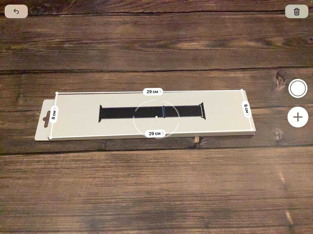Вы можете нажать значок маркера в верхнем левом углу, чтобы отобразить измеренные вами размеры на экране. Нажмите кнопку спуска затвора, чтобы сделать снимок объекта с видимыми размерами.