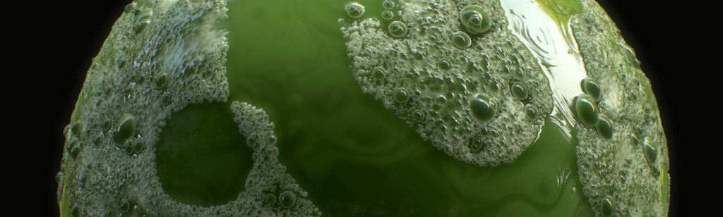И наконец, в нормаль вдоль кромки пены я также добавил гладкий скос дабы отобразить эффект натяженности воды снаружи между пеной и зеленой слизистой субстанцией.