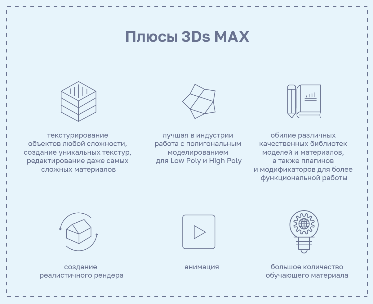 Софт кажется слишком сложным до тех пор, пока не начнёшь в нём что-то делать. Проходя курсы и читая форумы, постепенно привыкаешь к программе и спокойнее в ней ориентируешься. Несмотря на обширный интерфейс, 3ds Max достаточно интуитивен в использовании. Главное — разобраться в основных панелях и понять структуру софта. Это того стоит, так как получается красивый результат.