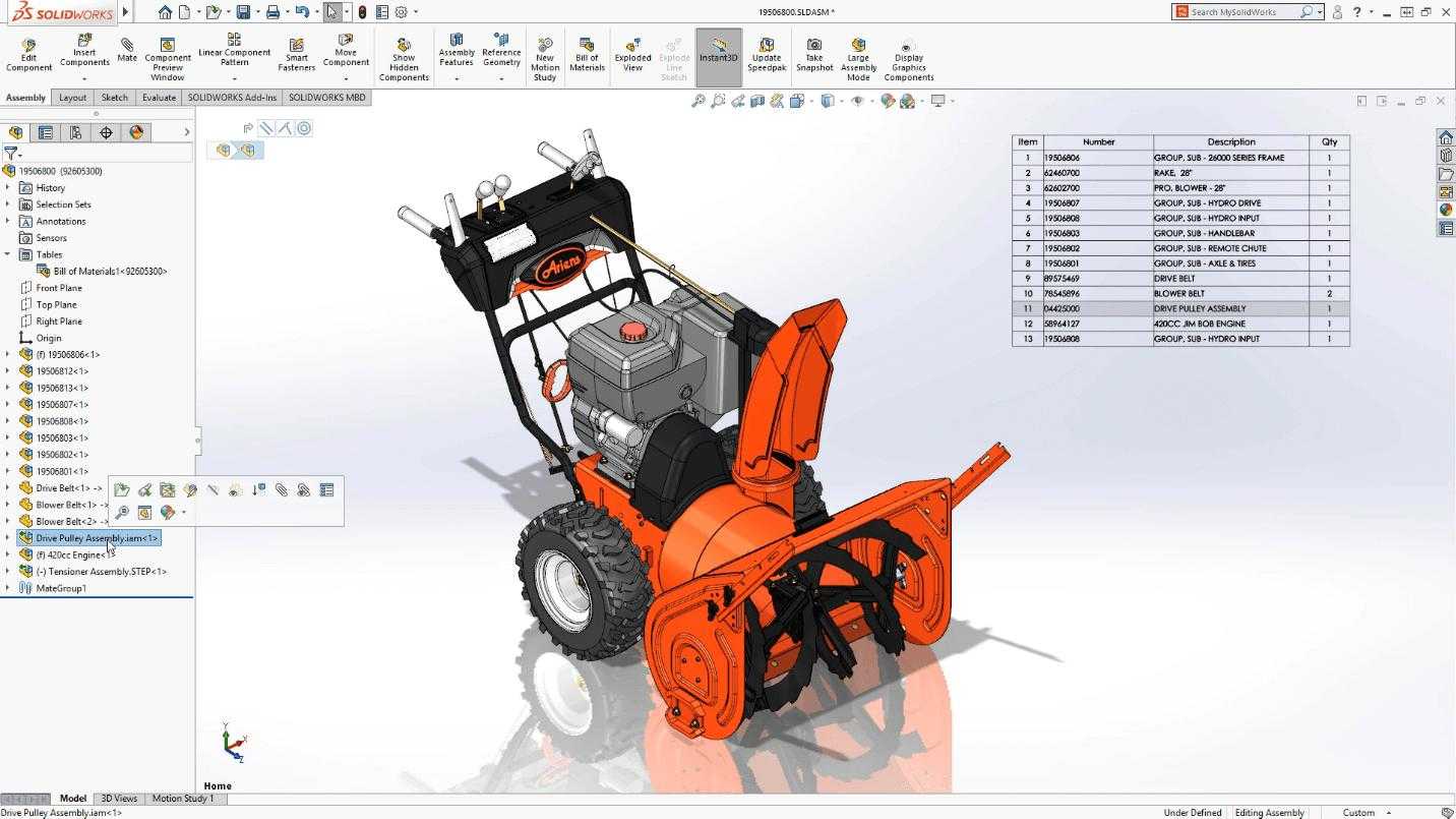 Твердотельная объемная модель снегоуборочной машины для загородного участка, выполненная инженером в программе SolidWorks
