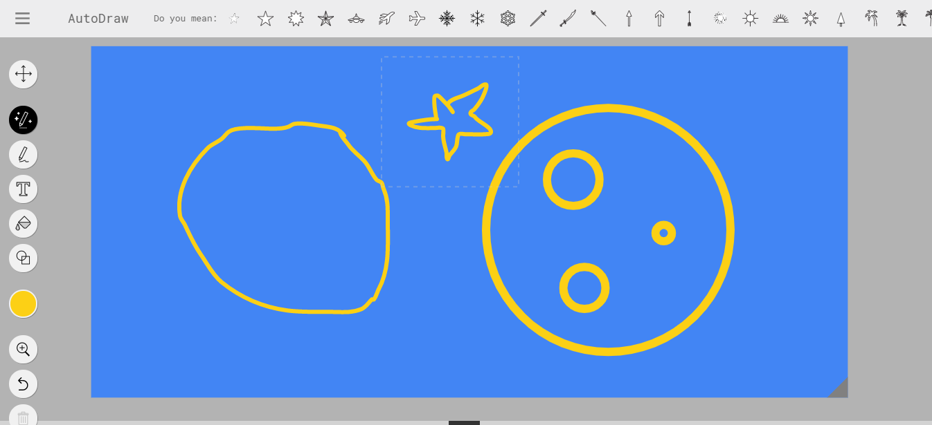 Желтый круг легко превращается в Луну, а для нарисованной звезды программа выдает два десятка вариантов: от звездочки до самолета