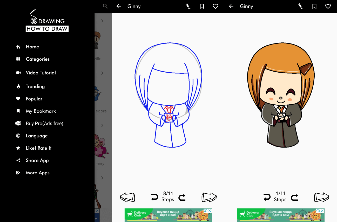 Внизу экрана есть рекламный баннер. В настоящее время удалить его нельзя даже за деньги, но потихоньку отрисовывать свой набросок реклама не мешает, да и детей, уверен, больше заинтересуют картинки покемонов и персонажей «Бен 10».
