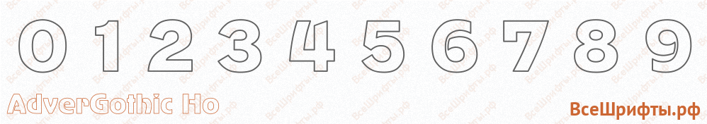 Предварительный просмотр шрифта «AdverGothic Ho» с цифрами (0 1 2 3 4 5 6 7 8 9).