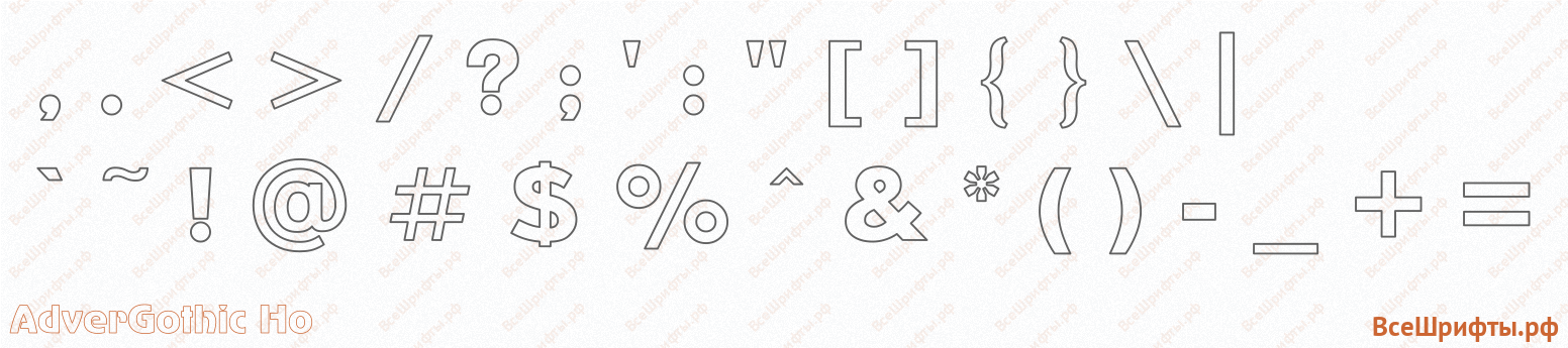 Предварительный просмотр шрифта «AdverGothic Ho» со знаками препинания и пунктуации (, . / ? ; ‘ : » { } \ | ` ~ ! @ # $ % ^ & * ( ) — _ + =).