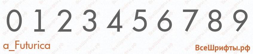 Предварительный просмотр шрифта «a_Futurica» с цифрами (0 1 2 3 4 5 6 7 8 9).