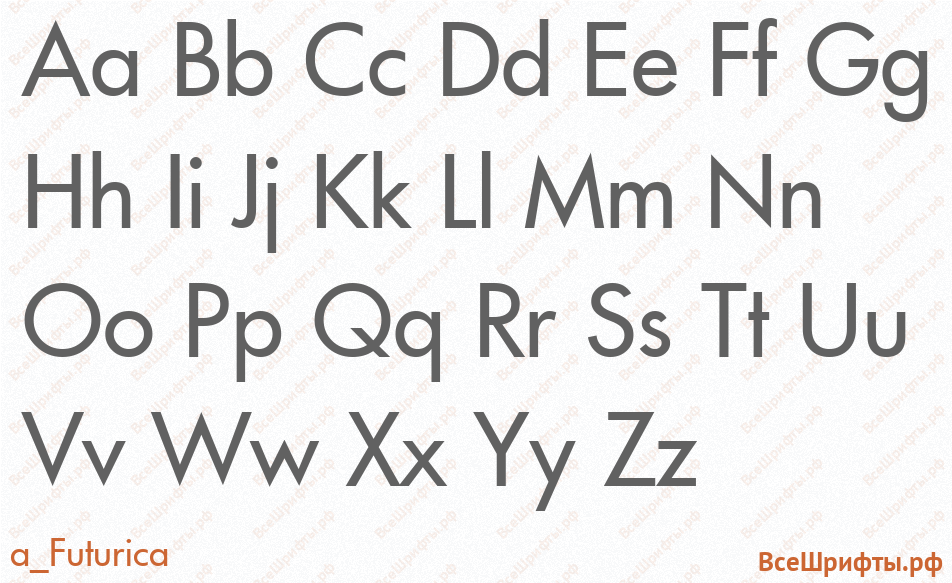 Предварительный просмотр шрифта «a_Futurica» с прописными и строчными латинскими буквами (английский алфавит A-Z и a-z).