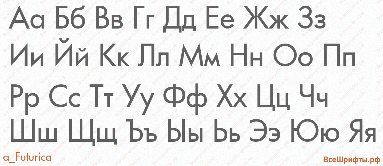 Предварительный просмотр шрифта «a_Futurica» с прописными и строчными русскими буквами (кириллица, русский алфавит А-Я и а-я).