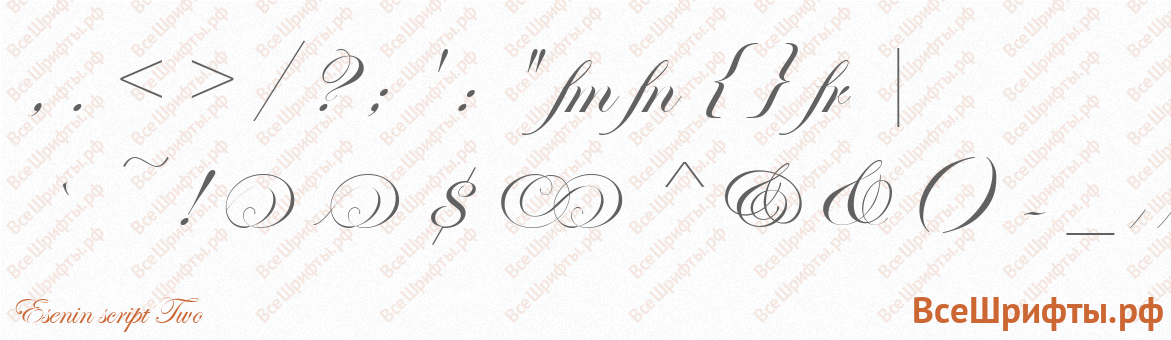 Предварительный просмотр шрифта «Esenin script Two» со знаками препинания и пунктуации (, . / ? ; ‘ : » { } \ | ` ~ ! @ # $ % ^ & * ( ) — _ + =).