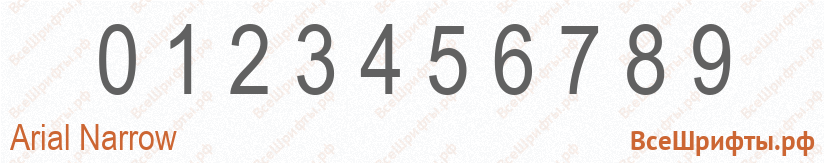 Предварительный просмотр шрифта «Arial Narrow» с цифрами (0 1 2 3 4 5 6 7 8 9).