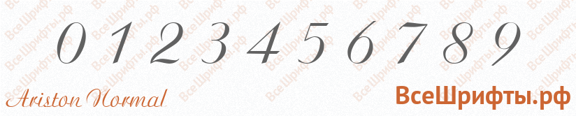 Предварительный просмотр шрифта «Ariston Normal» с цифрами (0 1 2 3 4 5 6 7 8 9).