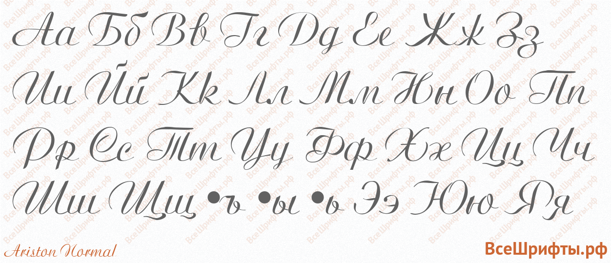 Предварительный просмотр шрифта «Ariston Normal» с прописными и строчными русскими буквами (кириллица, русский алфавит А-Я и а-я).