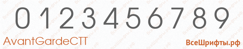 Предварительный просмотр шрифта «AvantGardeCTT» с цифрами (0 1 2 3 4 5 6 7 8 9).