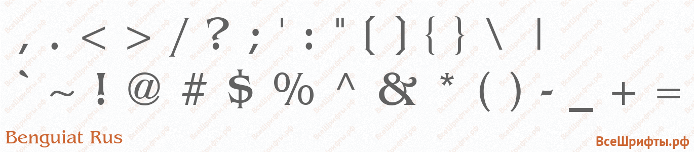Предварительный просмотр шрифта «Benguiat Rus» со знаками препинания и пунктуации (, . / ? ; ‘ : » { } \ | ` ~ ! @ # $ % ^ & * ( ) — _ + =).