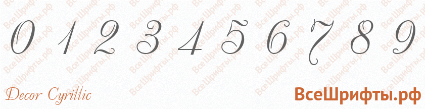 Предварительный просмотр шрифта «Decor Cyrillic» с цифрами (0 1 2 3 4 5 6 7 8 9).