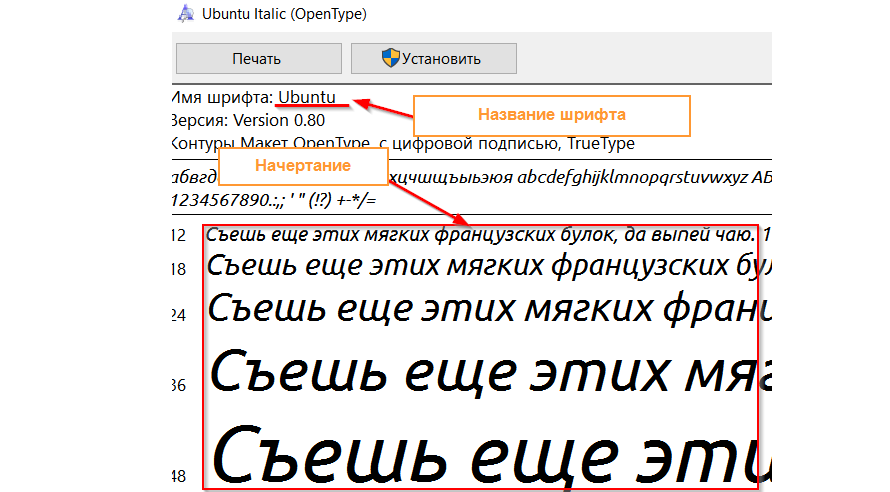 Перед тем как ставится шрифт, его можно посмотреть и просто соотнести подходит он вам или нет. Как именно выглядит его начертание. Для этого необходимо просто открыть сам файл и при помощи двойного нажатия произвести запуск выбранного элемента. Вот так легко и просто можно пронаблюдать, как выглядит данного рода шрифт, и оценить насколько он оправдал ожидания. Если не просматривать, то можно столкнуться с тем, что скачиваешь кучу ненужного, которое в итоге не подходит или вообще не работает. Запускать просмотр можно и из архива и пред просмотр обычно выглядит вот таким образом.