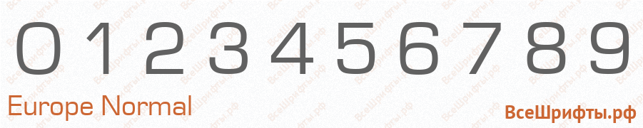 Предварительный просмотр шрифта «Europe Normal» с цифрами (0 1 2 3 4 5 6 7 8 9).